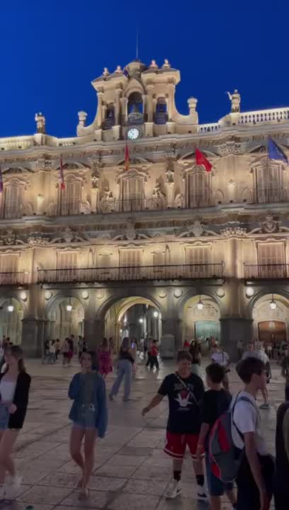 We carried on eastwards into Spain and drove through wide open plains with huge ranches on them. In Salamanca, we visited the two cathedrals built into one another, one such older and the other gothic. The Art Deco museum was fantastic. At ten past ten p.m. we experienced the lights turning on at the Playa major.